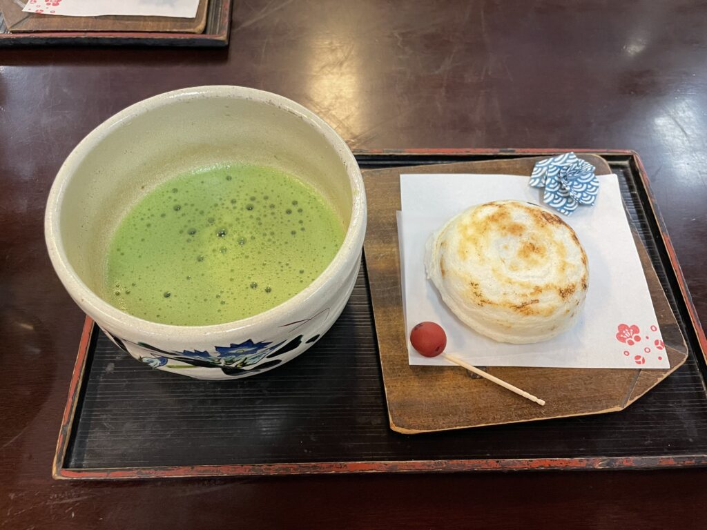 途中に梅ヶ枝餅を売っている店が