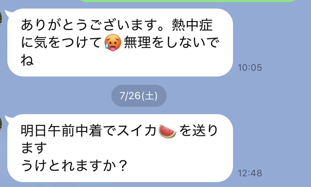スイカを送るとlineがきた