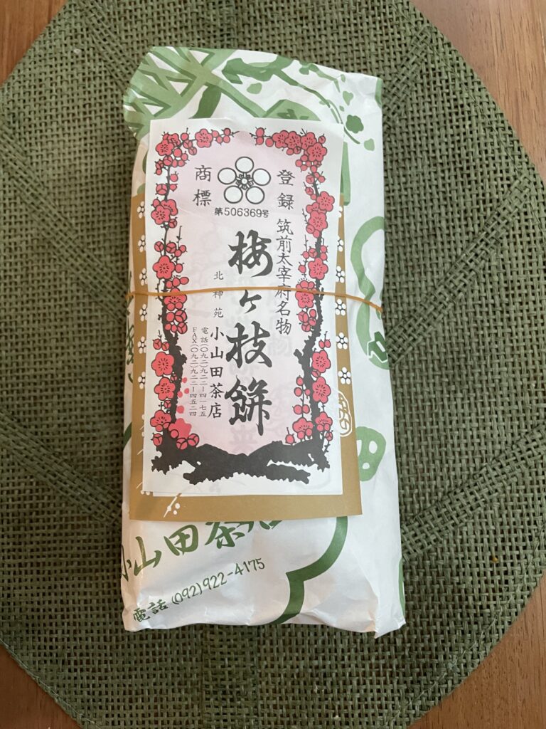 よもぎを練りこんだ緑色の梅ヶ枝餅が