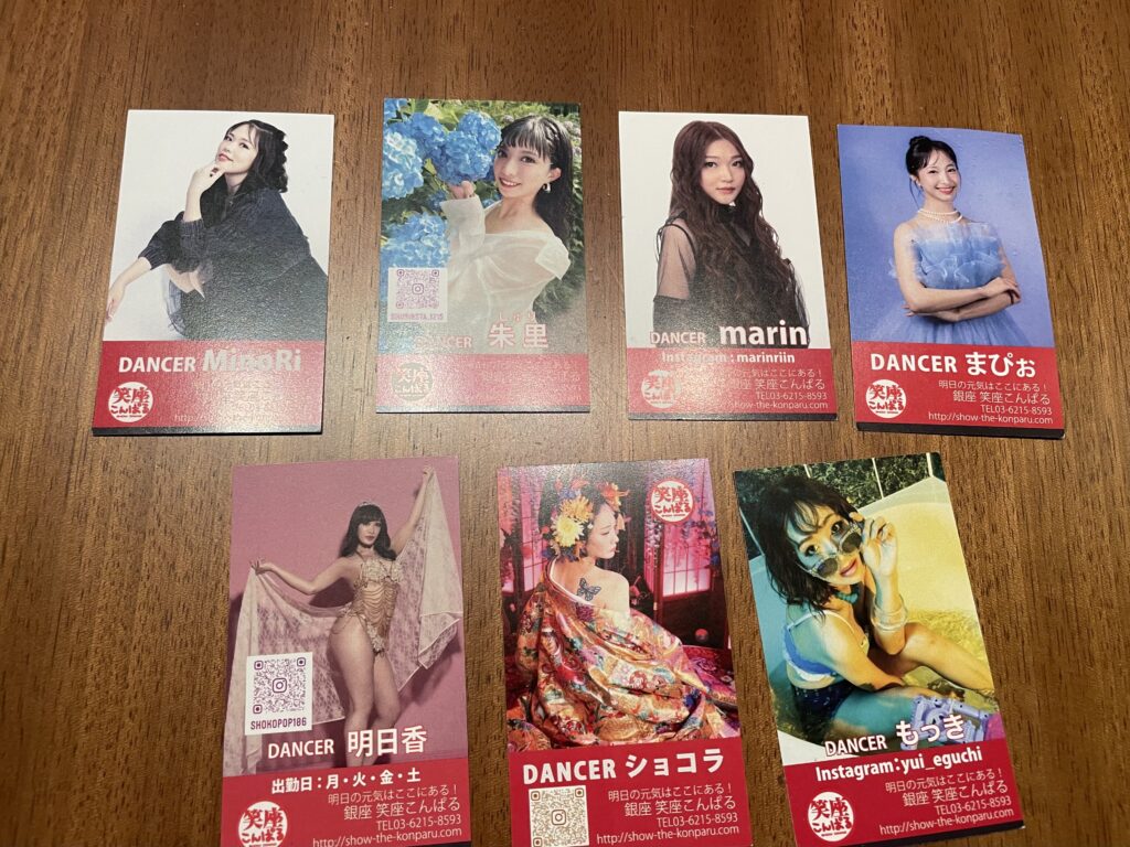 ダンサーたちが次々に名刺をもって